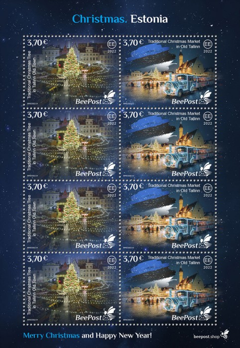 Estonia 2022 Stories and Myths Legends of ancient castles and Christmas traditions BeePost sheetlet of 4 strips mint