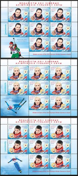 Belarus 2014 Medalists XXII Olympic Games in Sochi Olympics Set of 3 sheetlets with labels MNH [BY14/Y]